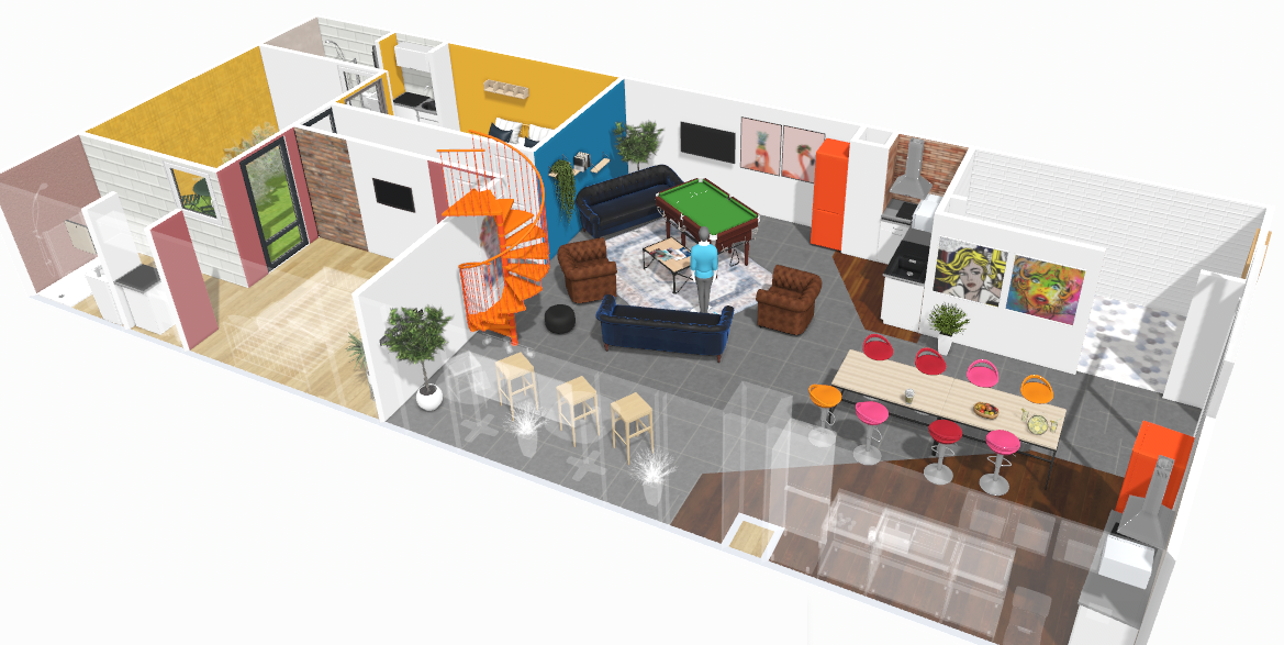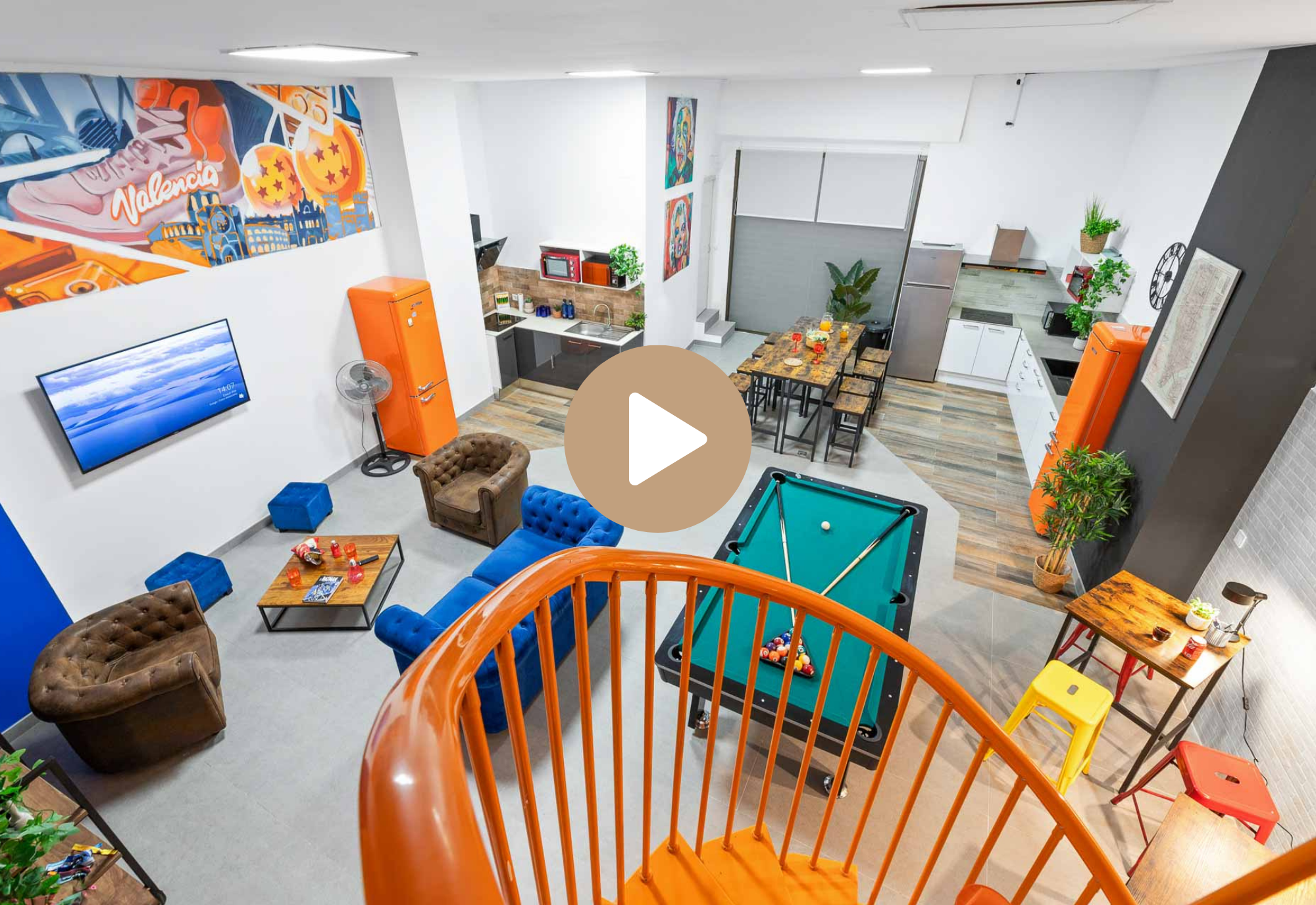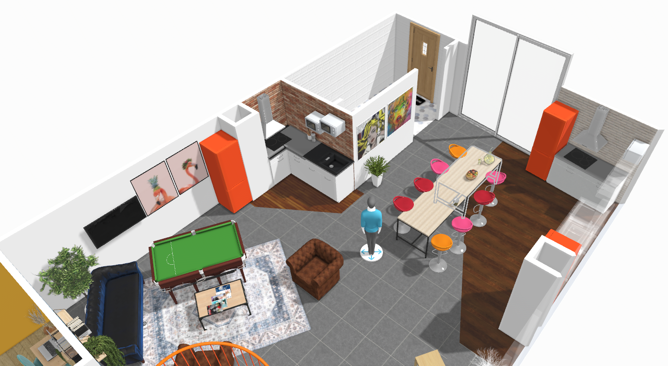Friendliness and shared space. Pool table.